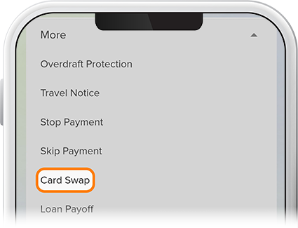 Tap Menu at the bottom of the screen, scroll to the More drop-down, then select Card Swap.