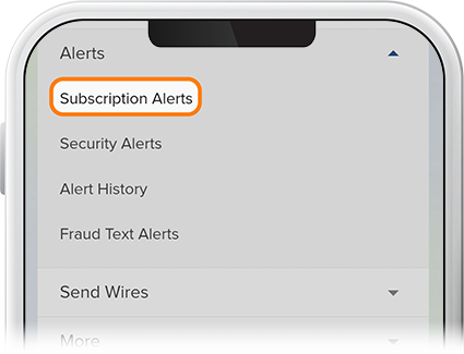 Tap Menu, scroll to the Alerts drop-down and select Subscription Alerts.