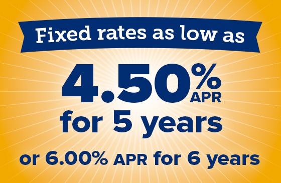 Choose between a rate as low as 4.50% APR for 5 years or 6.00% for six years* when you open a HELOC, draw funds, and convert your balance to a fixed loan. We’ll pay most closing costs and waive your annual fee for 5 years.*