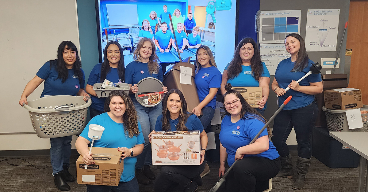 SELCO team members partner with ShelterCare to assemble move-in kits filled with essentials, helping people transitioning into safe, supporting housing.